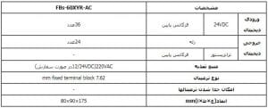 کارت ماژول گسترش ورودی و خروجی دیجیتال FATEK مدل FATEK FBS-60XYR-AC دارای 36 ورودی و 24 خروجی دیجیتال می باشد که خروجی آن از نوع رله و ولتاژ تغذیه آن 24 ولت DC و دارای منبع تغذیه داخلی می باشد. این کارت ماژول قابل گسترش از سمت راست می باشد و این کارت ماژول گسترش FATEK PLC برای سری های FBS (MB/MA-MC-MN) طراحی و ساخته شده است.