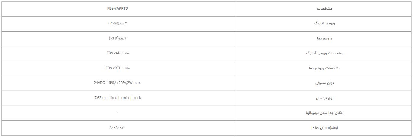 ماژول گسترش دمای فاتک سری FBS-2A4RTD یک ماژول ترکیبی از ورودی RTD و آنالوگ ( ولتاژ و جریان) است.